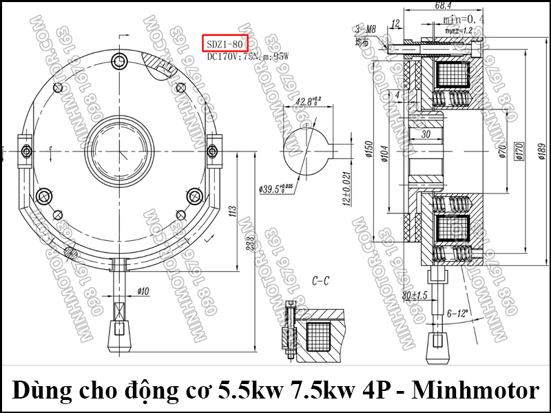 Bộ phanh từ - thắng từ 7.5 kw 10 ngựa gắn motor mã 132 đạt tiêu chuẩn chất lượng châu Âu, có thông số như sau: